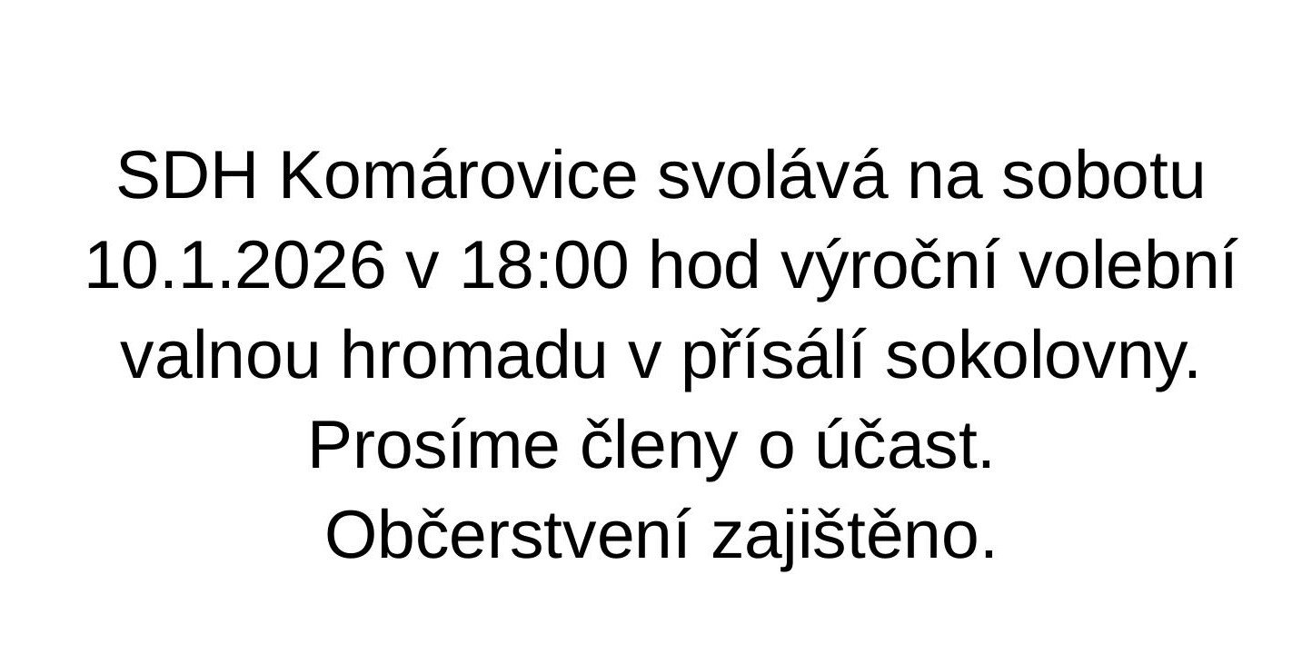 SDH Komárovice - Výroční volební valná hromada dne 10.1.2026 v 18:00 hod.